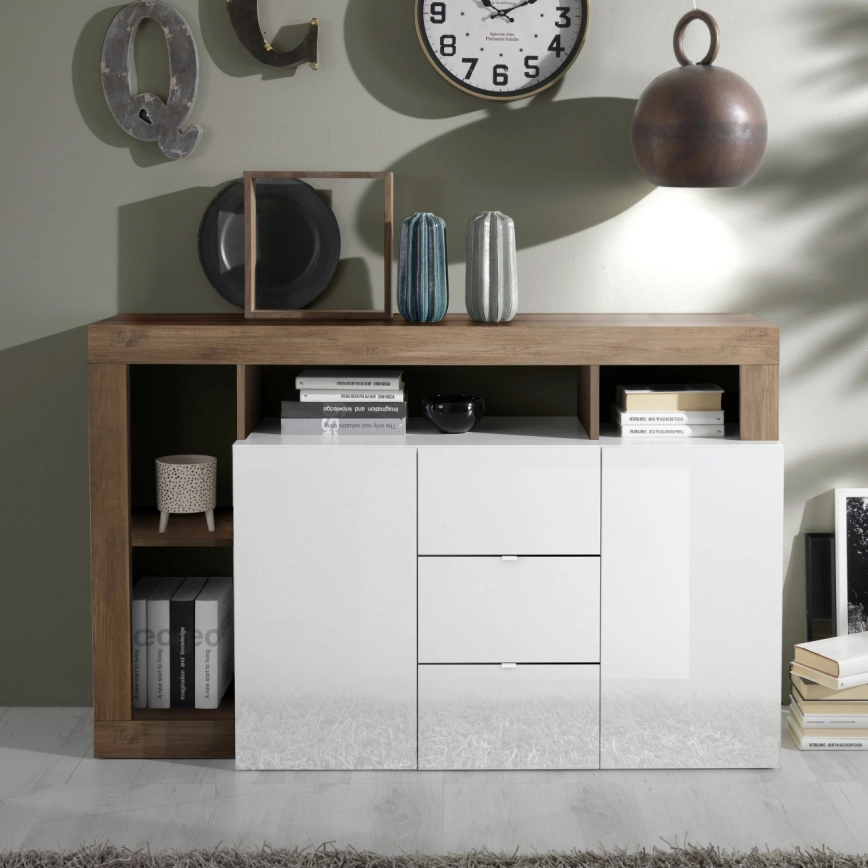 Commode LENOR blanche/chêne