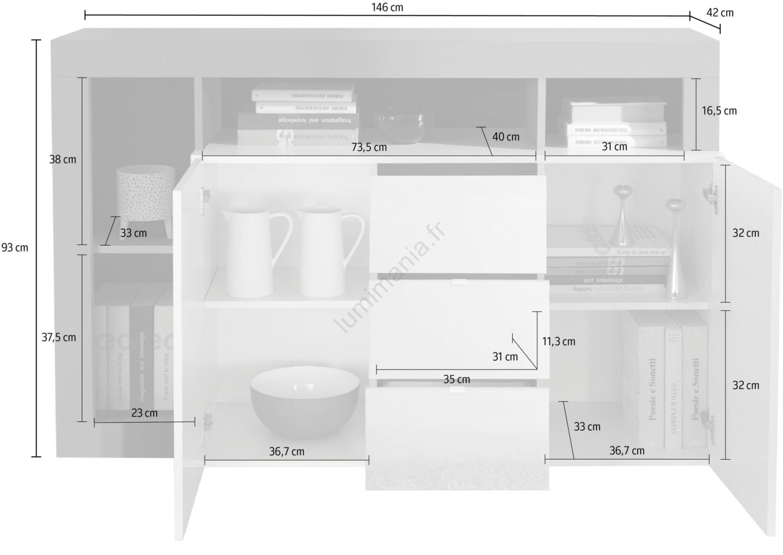 • Grâce à ses placards et tiroirs, elle offre un généreux espace de rangement pour organiser vos objets du quotidien.
