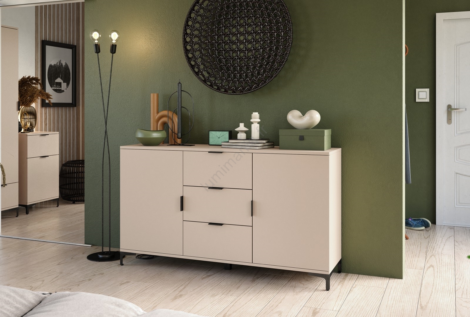• Ce meuble est conçu dans un style loft et se caractérise par des pieds et des poignées en métal, qui lui apportent une touche industrielle supplémentaire.
