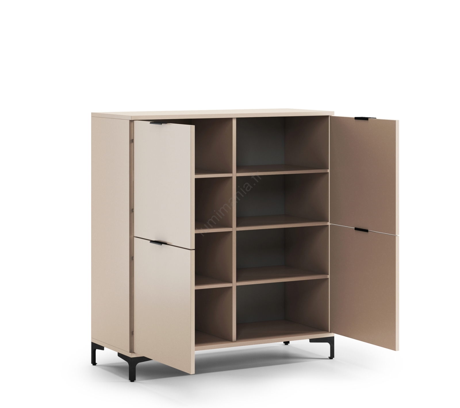 • Ce meuble adopte un style loft et se distingue par ses pieds et poignées en métal, lui apportant une touche industrielle supplémentaire.
