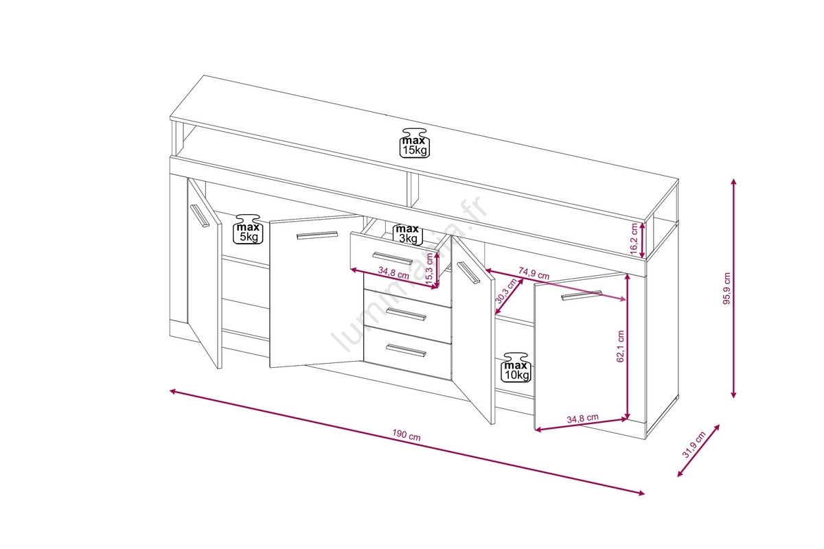 • Des poignées élégantes et des lignes épurées créent une esthétique moderne, idéale pour les salons contemporains.
