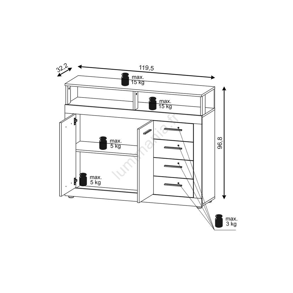 • Grâce à plusieurs tiroirs et compartiments, elle offre un espace de rangement généreux pour organiser vos affaires du quotidien.