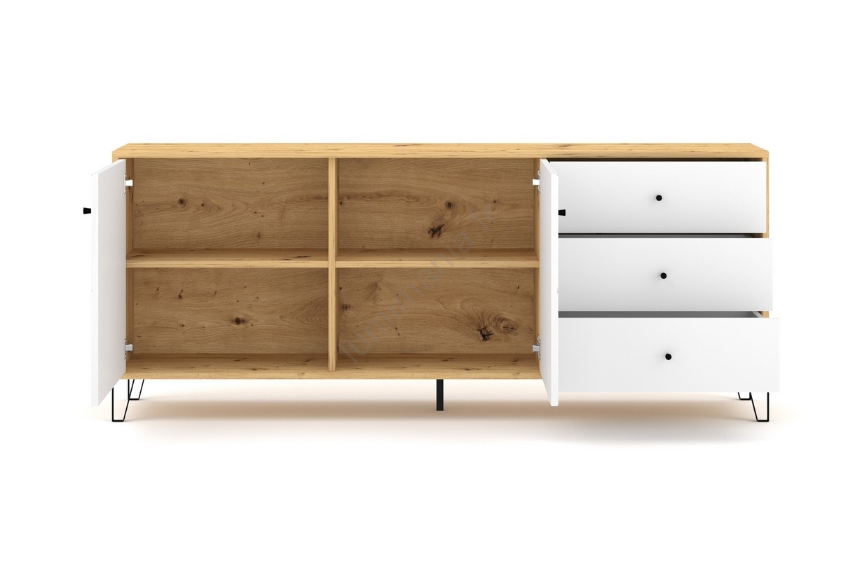 Commode SULA chêne artisanal/blanc