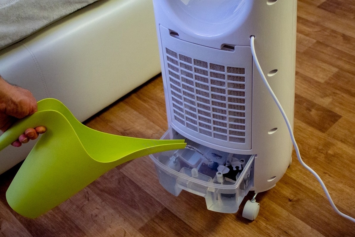 • Si vous souhaitez un air encore plus frais, ajoutez des packs réfrigérants dans le réservoir ; ils sont fournis avec l'appareil.