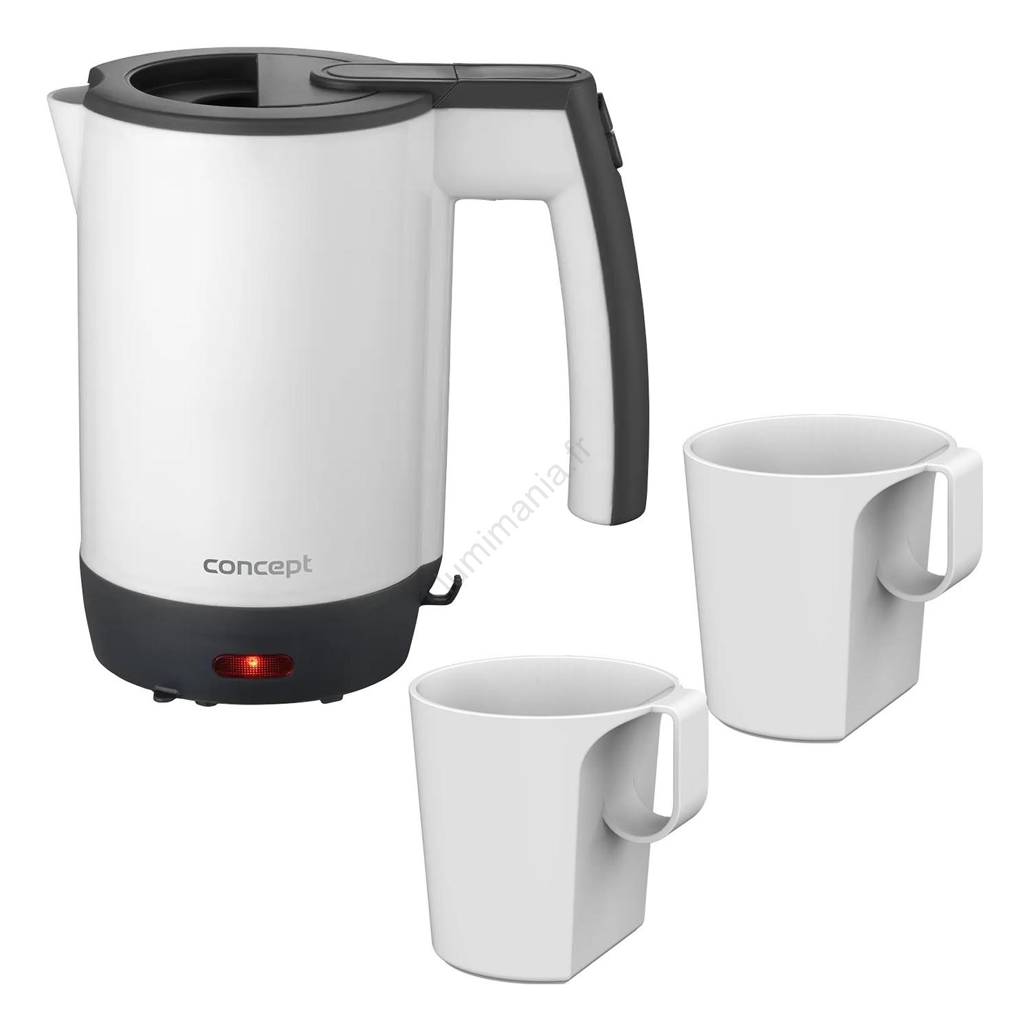 Concept RK7030 - Bouilloire électrique de voyage 0,5 l 1080W/230V gris/blanc + 2 tasses