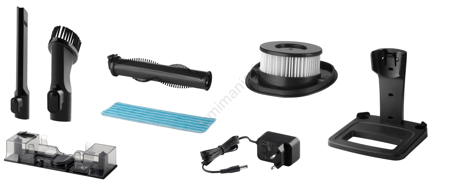 • Accessoires inclus : buse pour fentes, buse avec brosse, station de charge, module de lavage, chiffon de nettoyage, adaptateur secteur.