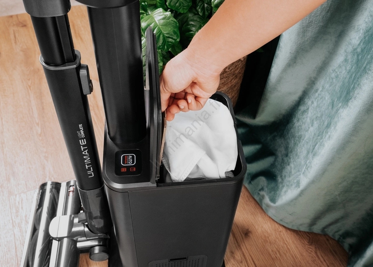 • La station multifonction vide hygiéniquement la saleté dans un sac de 3,8 l, sans rejeter la poussière dans l'air.
