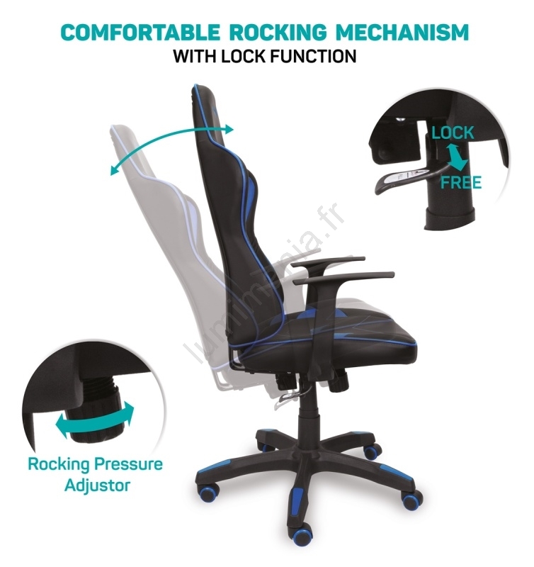• Mécanique de basculement avec réglage de la fermeté selon le poids de l’utilisateur.