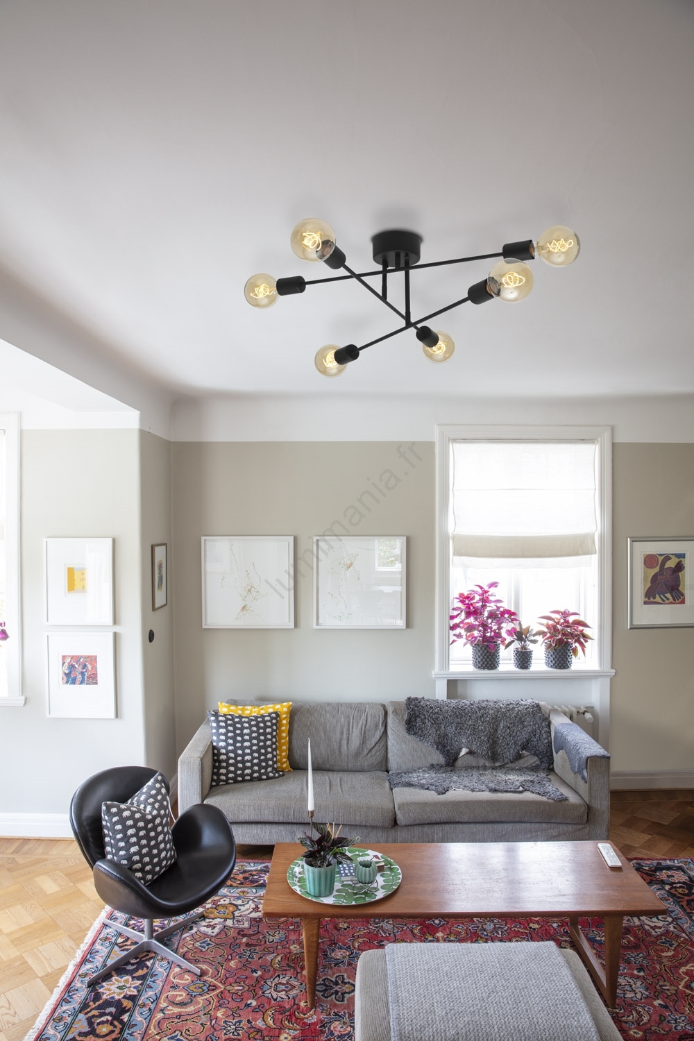 Cottex - Plafonnier monté en surface BATON 6xE27/60W/230V noir caractérise un design agréable et fonctionnel.  Une ampoule à culot E27 convient pour ce luminaire. Ici, vous pouvez acheter d'autres ampoules à des prix avantageux. Vous aurez un ajout intéressant dans votre intérieur.
