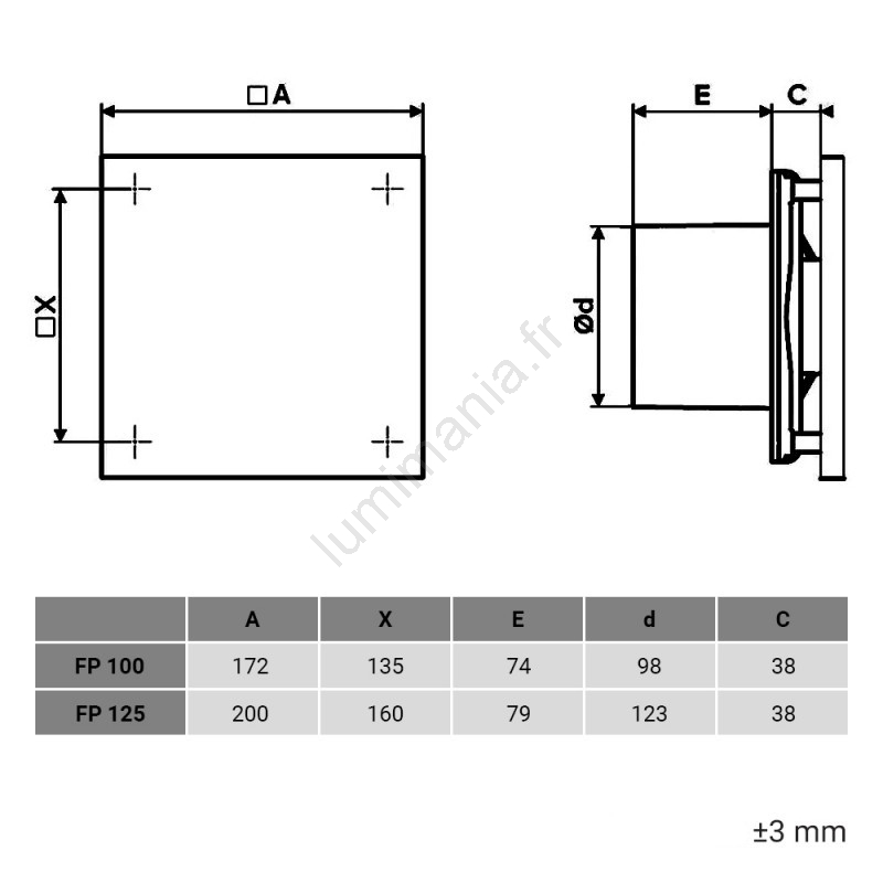 • Le ventilateur est compatible avec des conduits d'un Ø de 100 mm.