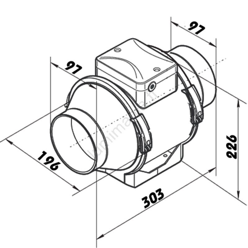 • Le ventilateur est compatible avec des conduits circulaires de Ø 100 mm.