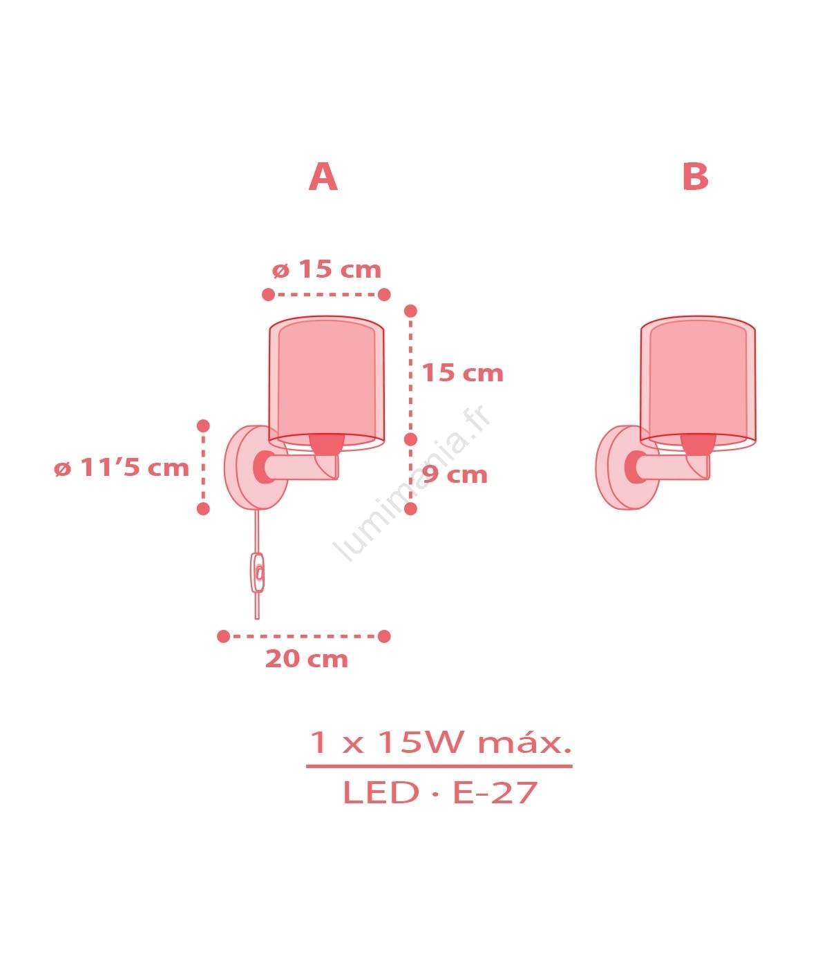 • Dalber 60919 - Lampe murale pour enfant PRINCESS DANCE 1xE27/15W/230V, rose