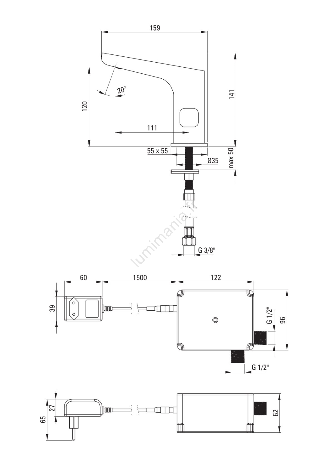• Le robinet est alimenté par un adaptateur secteur (inclus).