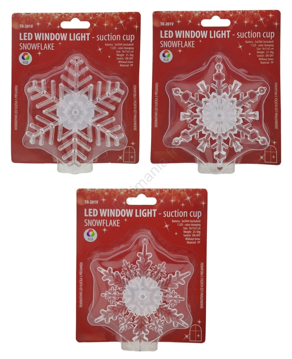 Décoration de Noël en forme de flocon, LED RGB, à ventouse — fonctionne avec 3× LR44