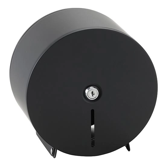 • Distributeur à tambour pour papier toilette d'un diamètre de 200 mm, de couleur noire élégante.