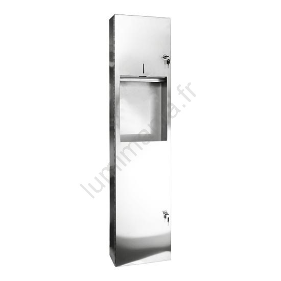 • Distributeur combiné de serviettes en papier avec poubelle intégrée pour un gain de place maximal.