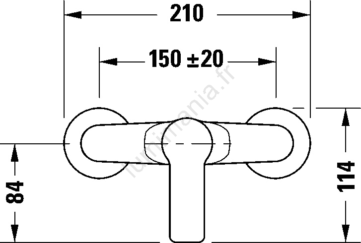 • Entraxe des raccordements d'eau : 150 mm ± 20 mm.