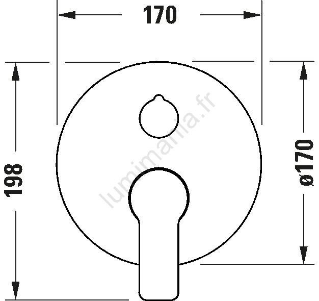• Le design du robinet est complété par une rosace de recouvrement ronde d'environ 170 mm de diamètre, qui souligne son aspect épuré et moderne.