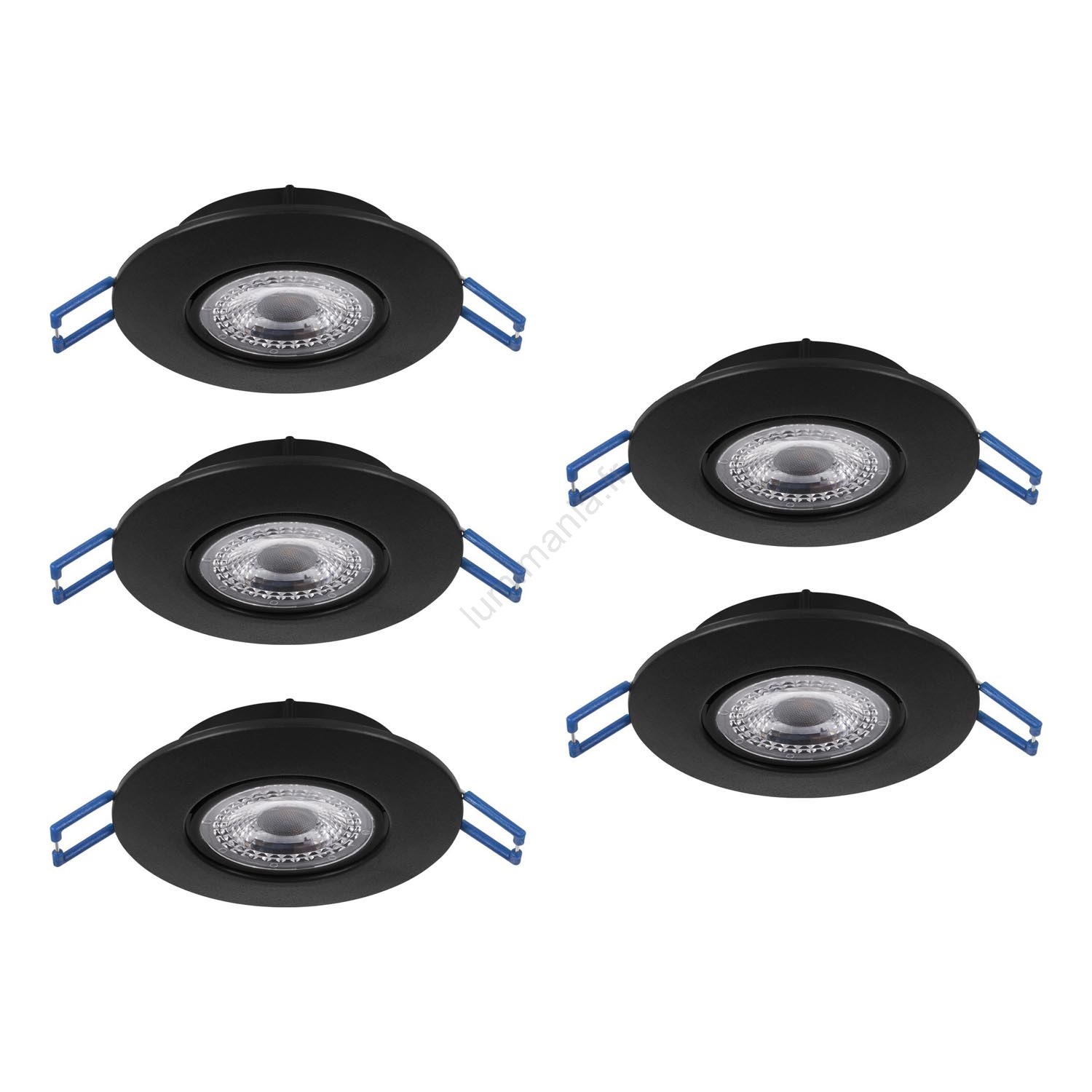 Eglo - Lot de 5 spots encastrés LED, 4,9 W, 230 V, 2700/4000/6500 K, Ø 9 cm, noir