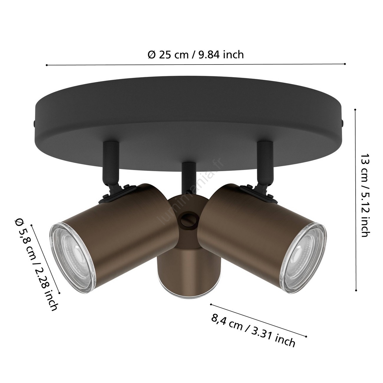 Eglo - Spot de salle de bains 3xGU10/5W/230V Ø25 cm IP44 noir/marron