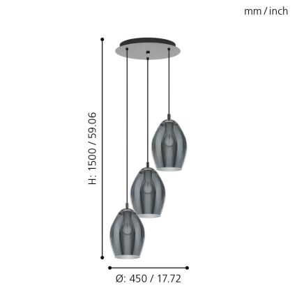 • Eglo - Suspension filaire 3xE27/60W/230V fumé