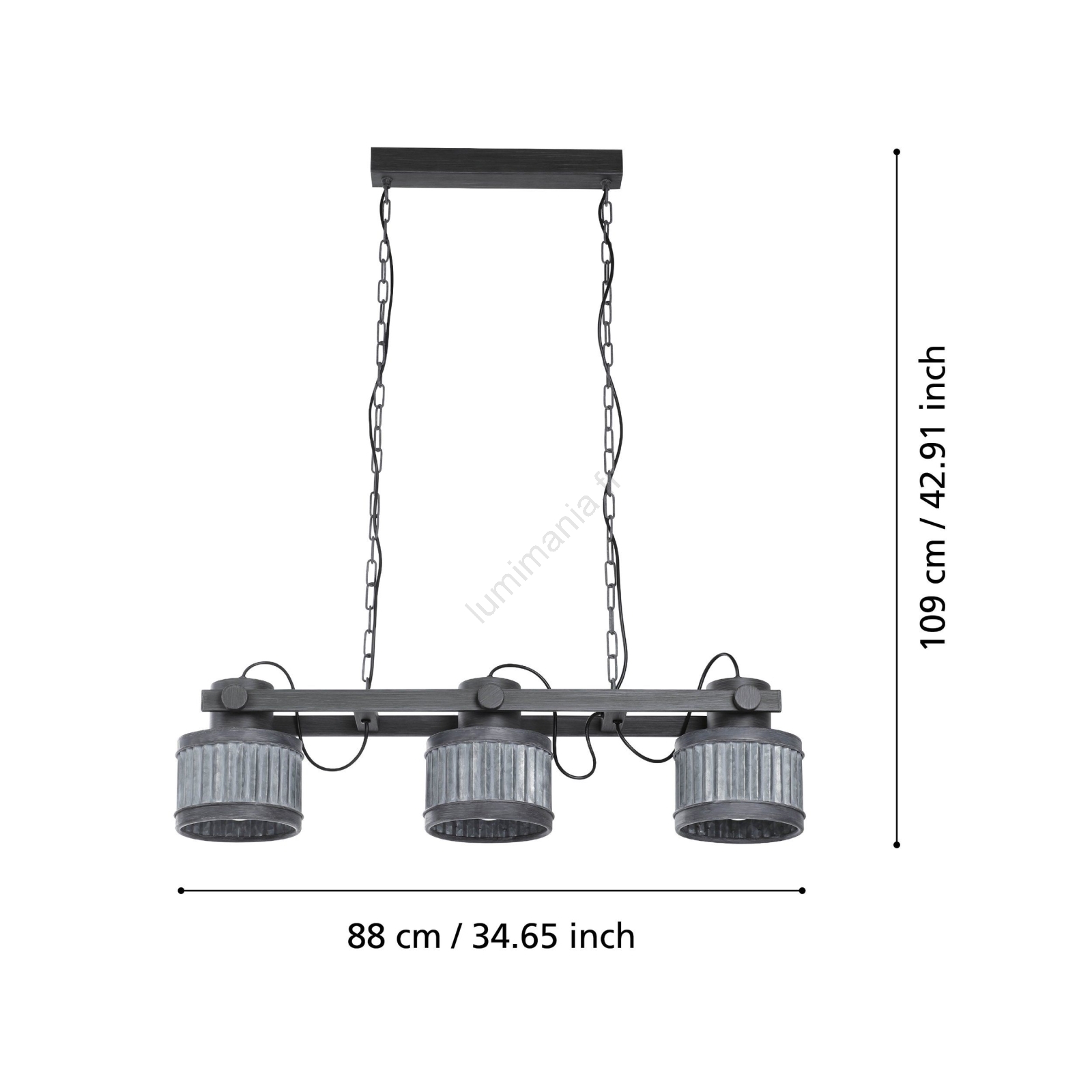 Eglo 43447 - Suspension sur chaîne TURROCK 3xE27/28W/230V caractérise un design agréable et fonctionnel.  Une ampoule à culot E27 convient pour ce luminaire. Ici, vous pouvez acheter d'autres ampoules à des prix avantageux. Vous aurez un ajout intéressant dans votre intérieur.