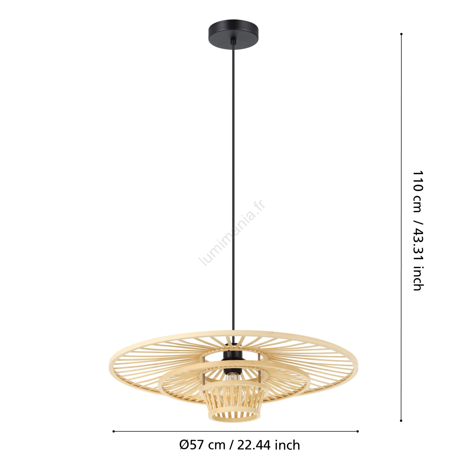Eglo - Suspension sur câble 1xE27/40W/230V bambou caractérise un design agréable et fonctionnel.  Une ampoule à culot E27 convient pour ce luminaire. Ici, vous pouvez acheter d'autres ampoules à des prix avantageux. Vous aurez un ajout intéressant dans votre intérieur.