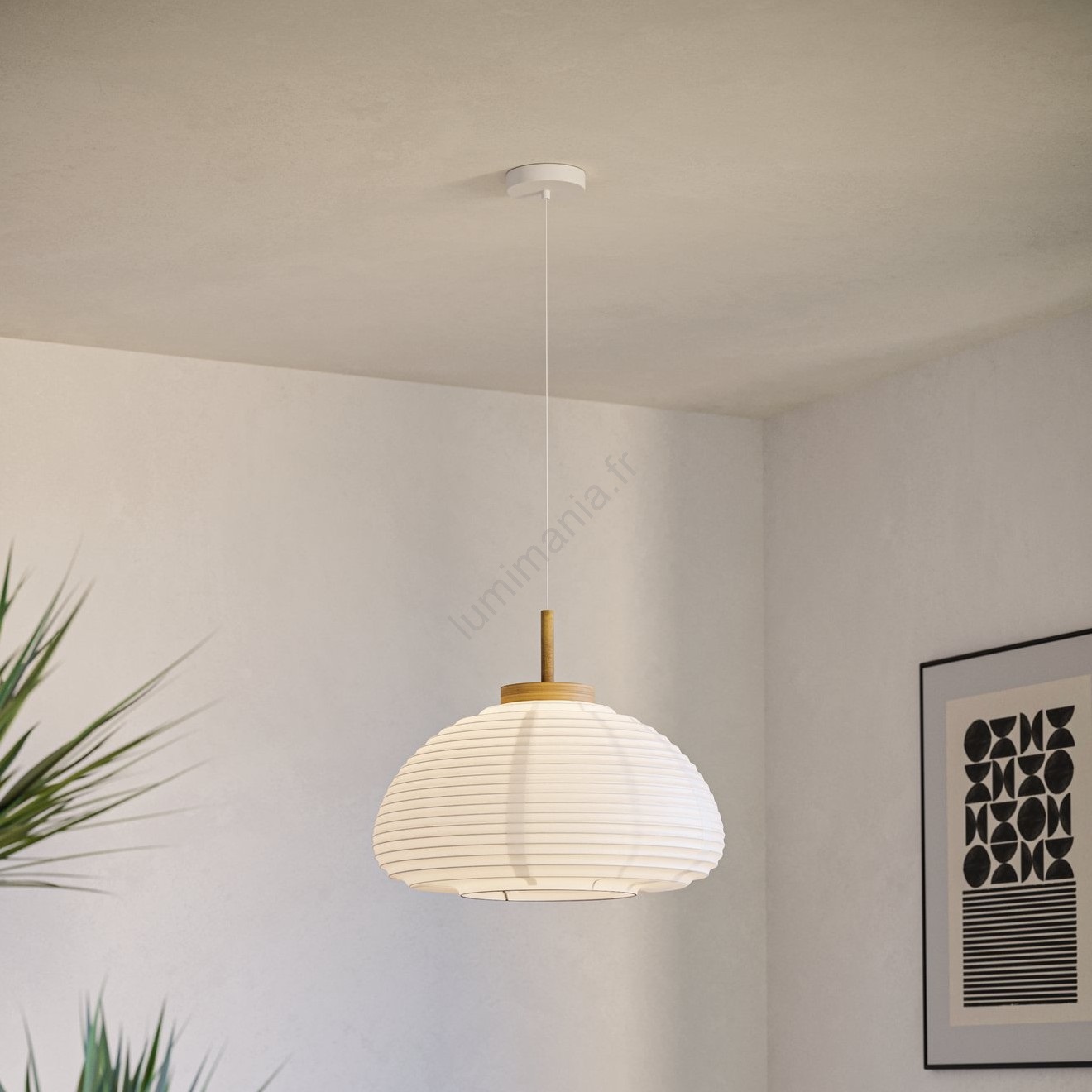 Eglo - Suspension sur câble 1xE27/40W/230V Ø 40 cm blanc/beige caractérise un design agréable et fonctionnel.  Une ampoule à culot E27 convient pour ce luminaire. Ici, vous pouvez acheter d'autres ampoules à des prix avantageux. Vous aurez un ajout intéressant dans votre intérieur.