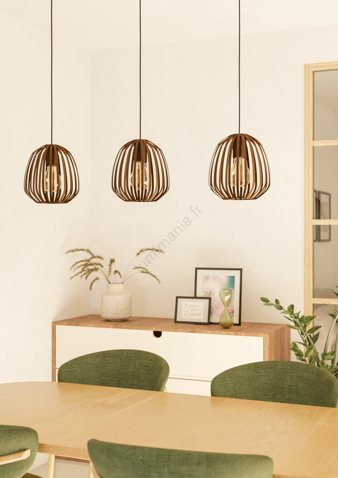Eglo - Suspension sur câble 3xE27/40W/230V bronze caractérise un design agréable et fonctionnel.  Une ampoule à culot E27 convient pour ce luminaire. Ici, vous pouvez acheter d'autres ampoules à des prix avantageux. Vous aurez un ajout intéressant dans votre intérieur.