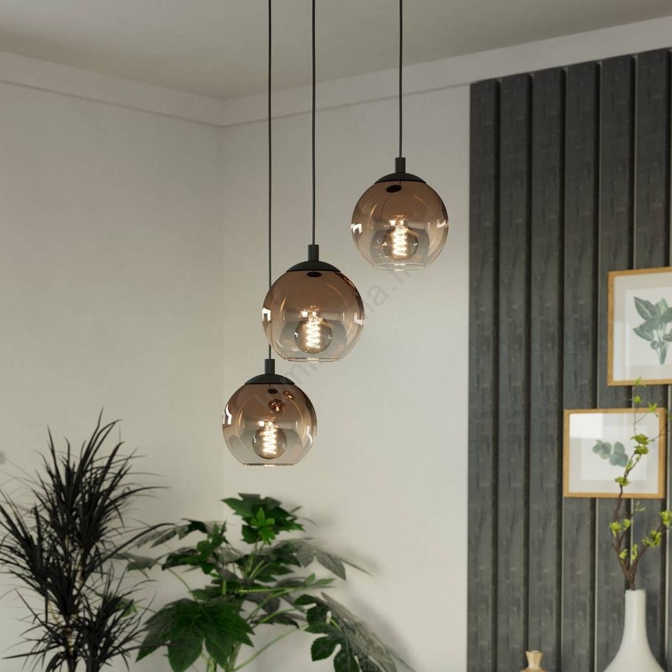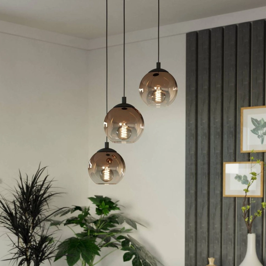 Eglo - Suspension sur câble 3xE27/60W/230V noir/beige/fumé caractérise un design agréable et fonctionnel.  Une ampoule à culot E27 convient pour ce luminaire. Ici, vous pouvez acheter d'autres ampoules à des prix avantageux. Vous aurez un ajout intéressant dans votre intérieur.