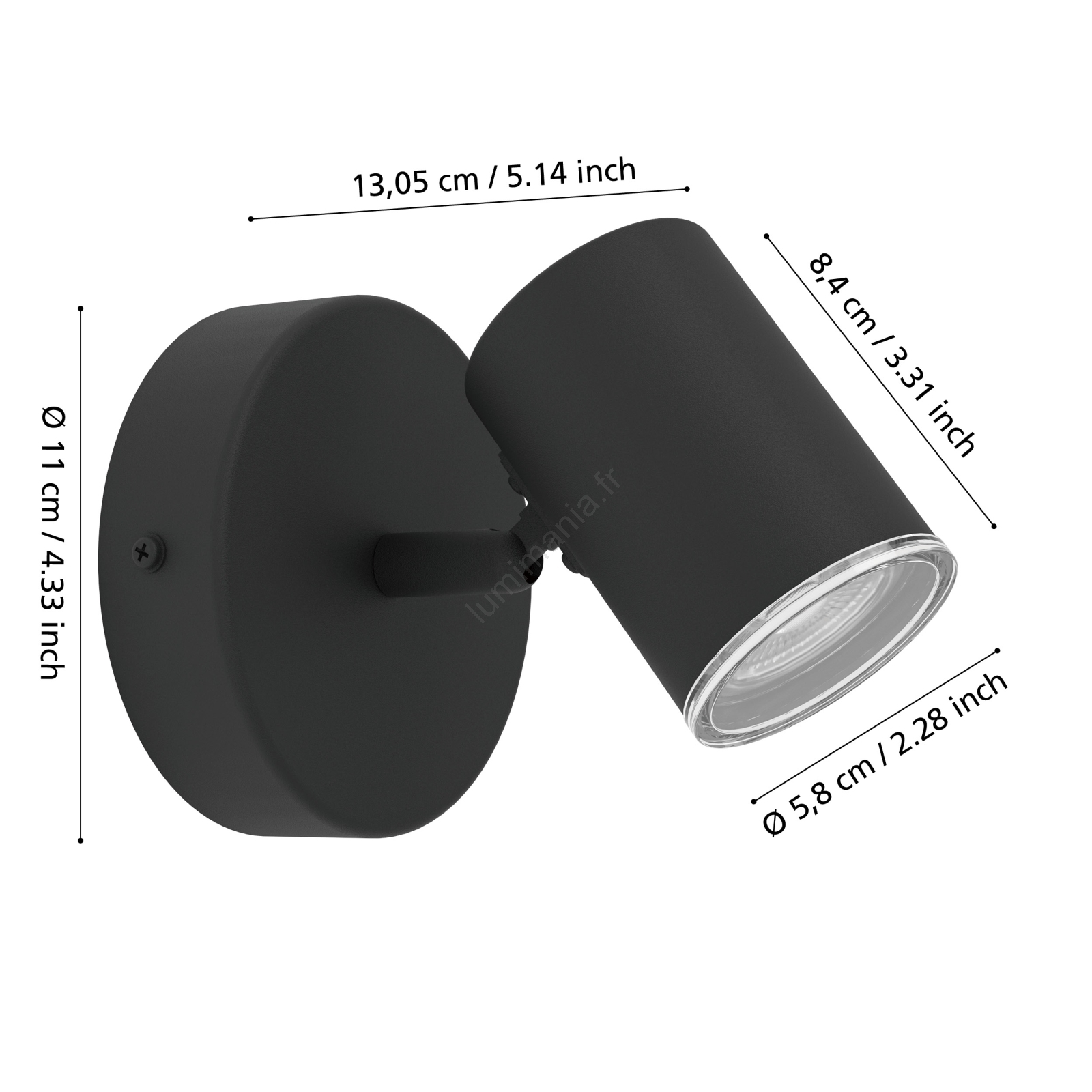 • Eglo - Applique spot murale pour salle de bains 1xGU10/5W/230V IP44 noir