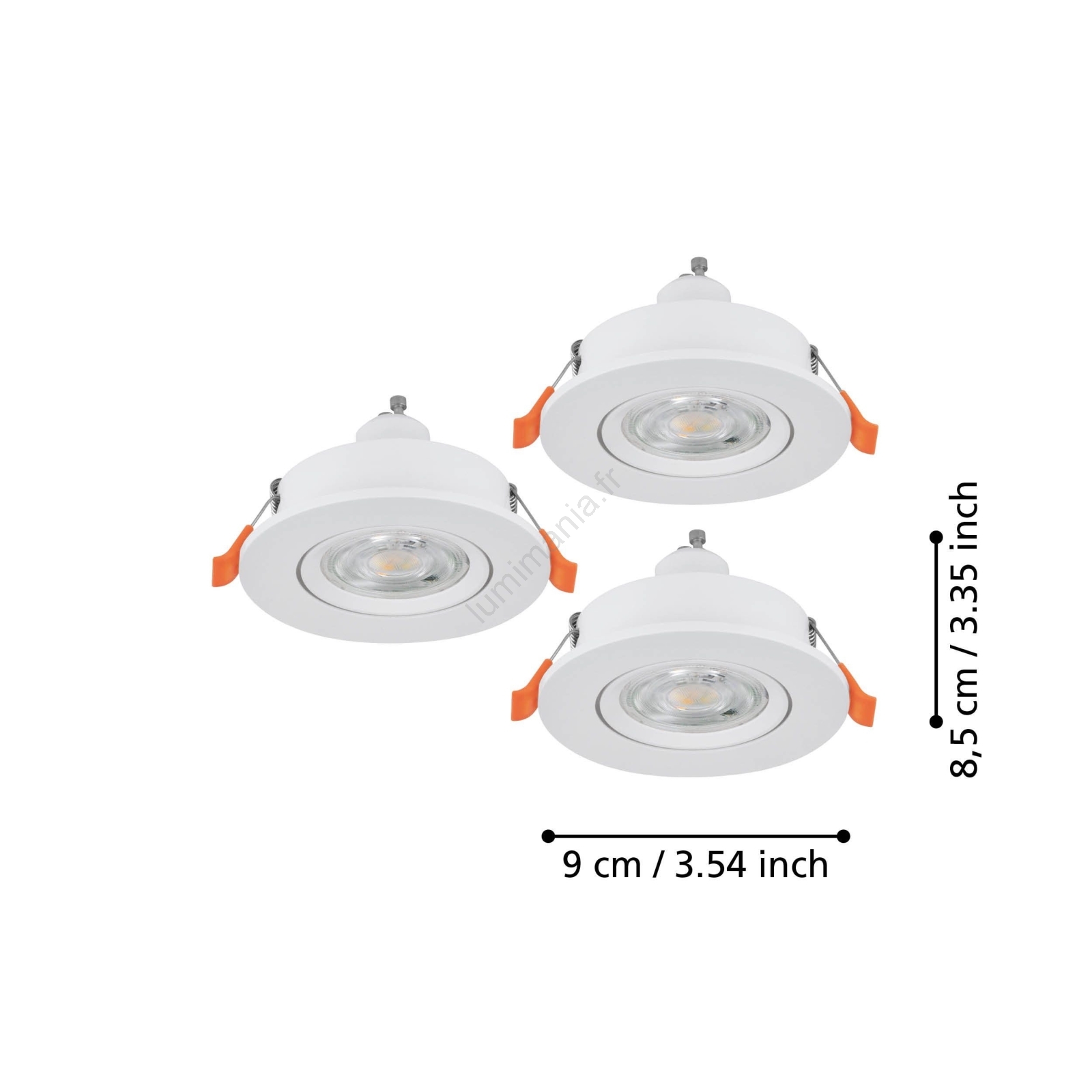 • Eglo - Pack de 3 spots LED encastrables 1x GU10/4,5W/230V, blanc