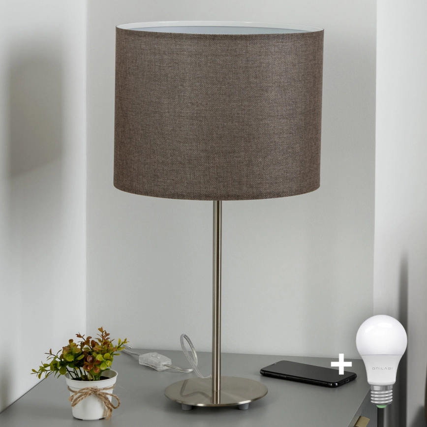 Eglo - LED Lampe de table TUNJA 1xE27/60W/230V 38,5 cm chrome mat/marron