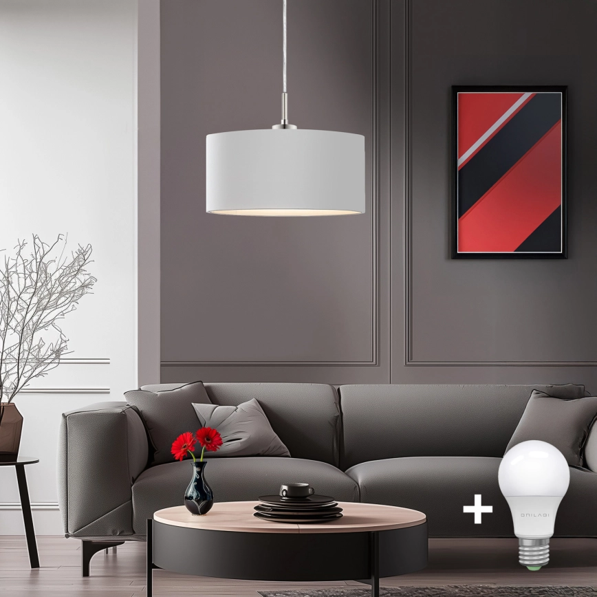 Eglo - Suspension LED sur câble TUNJA 1xE27/60W/230V blanche