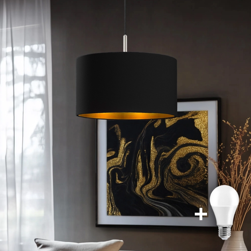 Eglo - LED Suspension sur câble TUNJA 1xE27/60W/230V noire