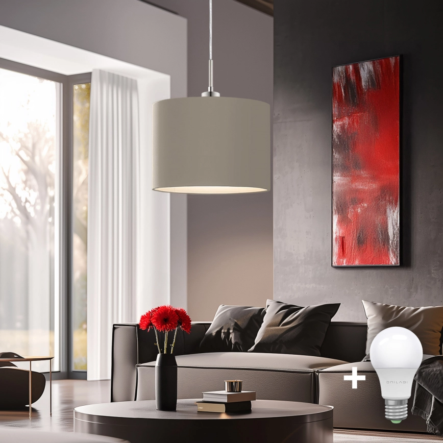 Eglo - Suspension LED sur câble TUNJA 1xE27/60W/230V taupe