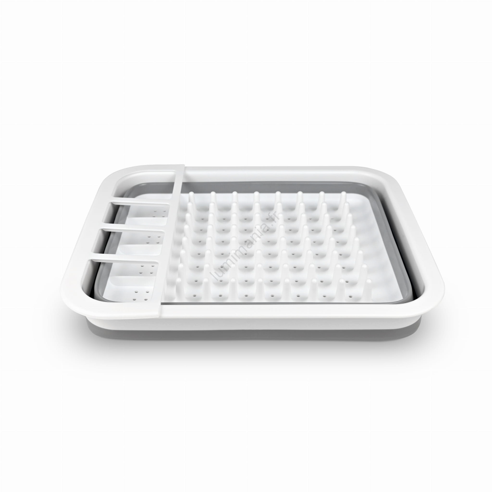 • Le matériau est du silicone de qualité alimentaire associé à un cadre robuste — léger, souple mais suffisamment stable pour recueillir l'eau qui s'écoule de la vaisselle.