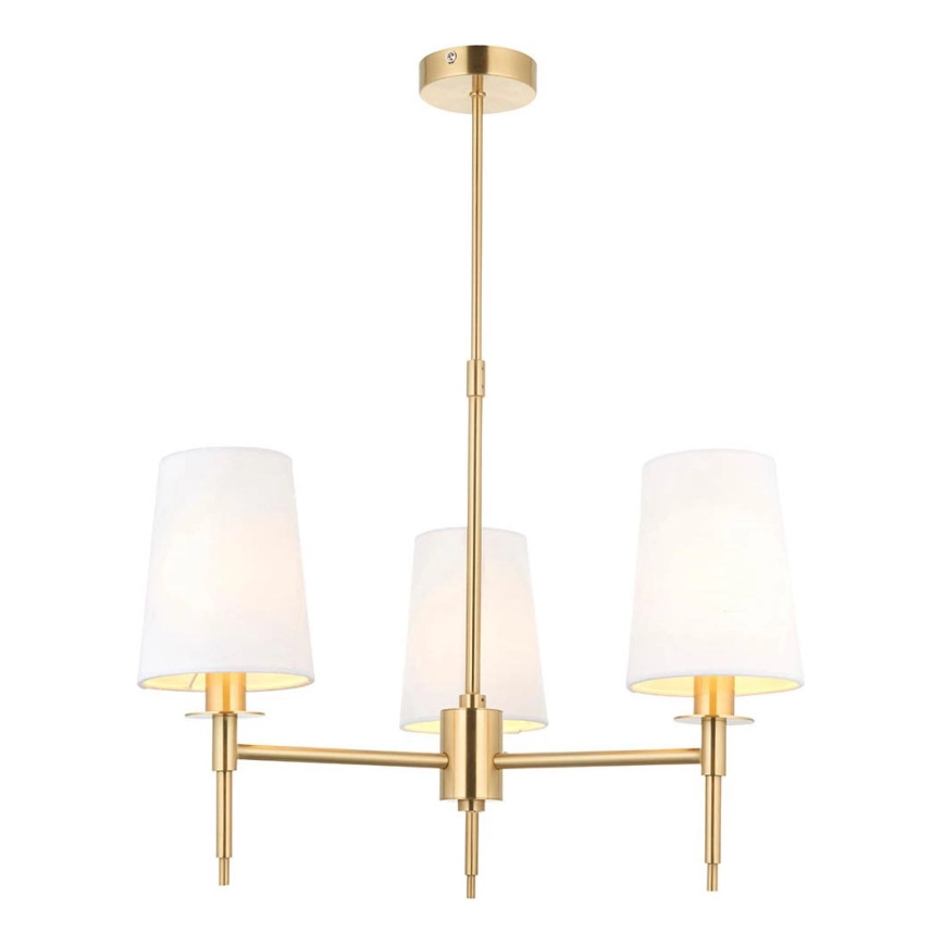 Endon 99456 - Lustre à tige 3xE14/6W/230V doré/blanc caractérise un design agréable et fonctionnel.  Une ampoule à culot E14 convient pour ce luminaire. Ici, vous pouvez acheter d'autres ampoules à des prix avantageux. Vous aurez un ajout intéressant dans votre intérieur.