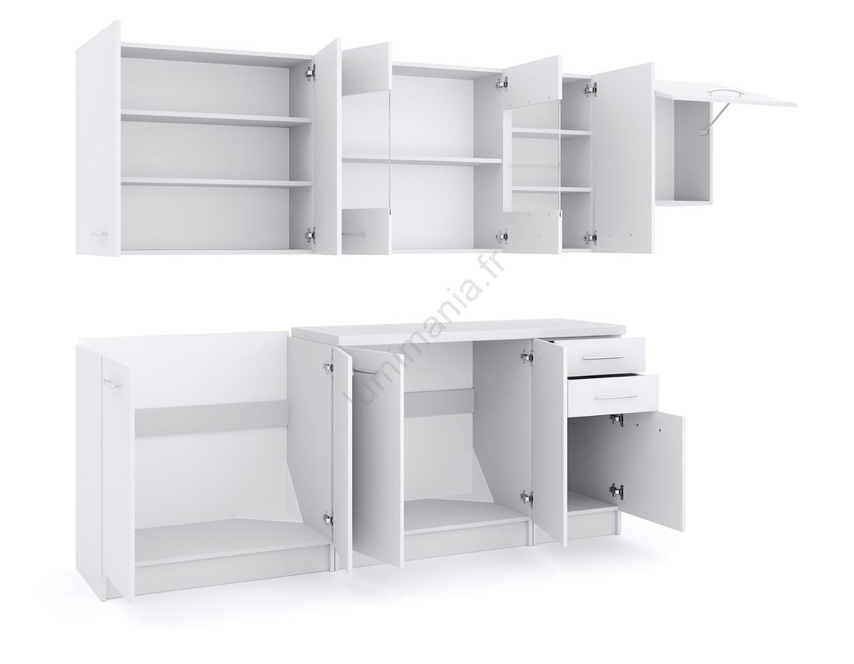 • L'aménagement des placards est modulaire, vous pouvez adapter la cuisine selon vos propres préférences.