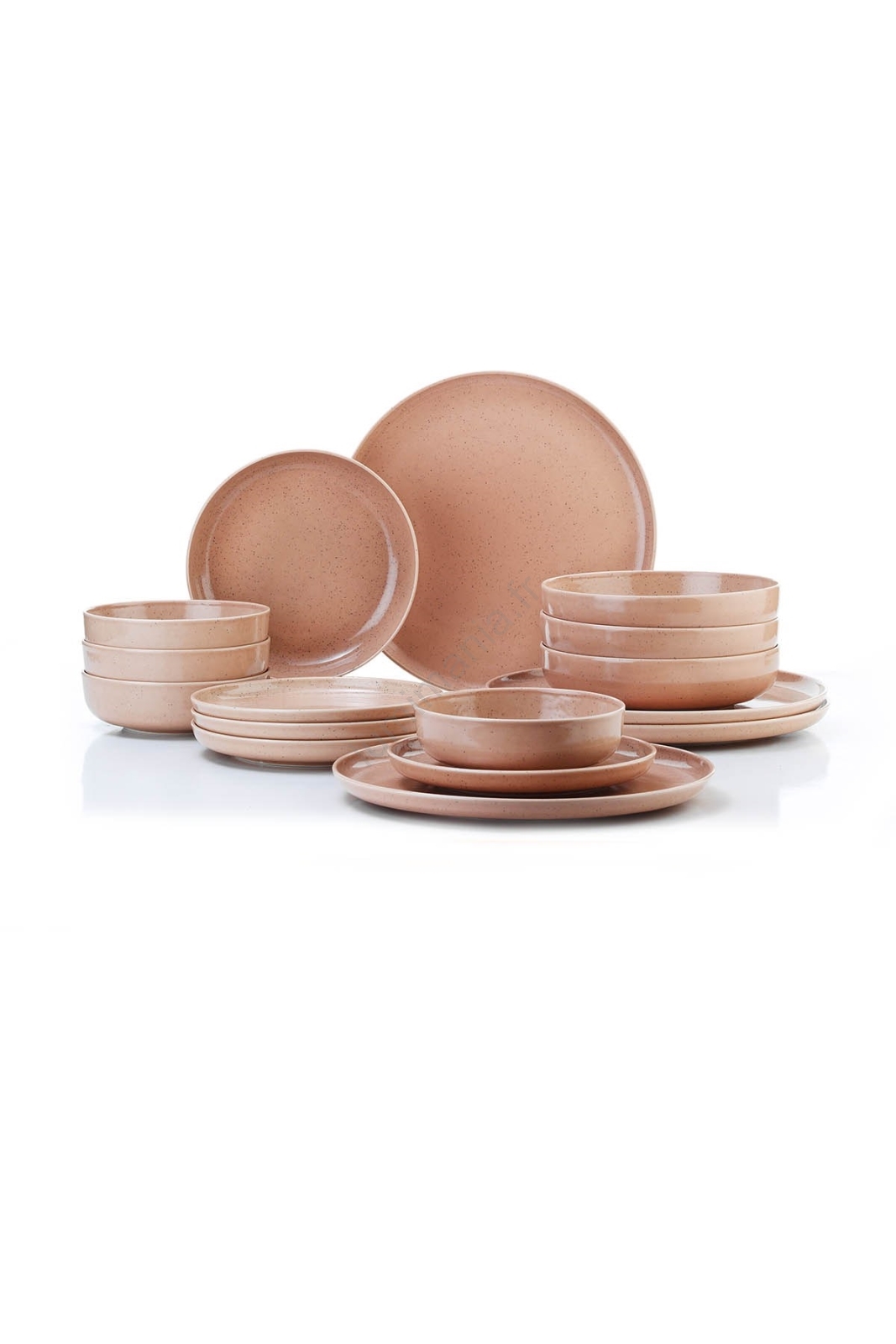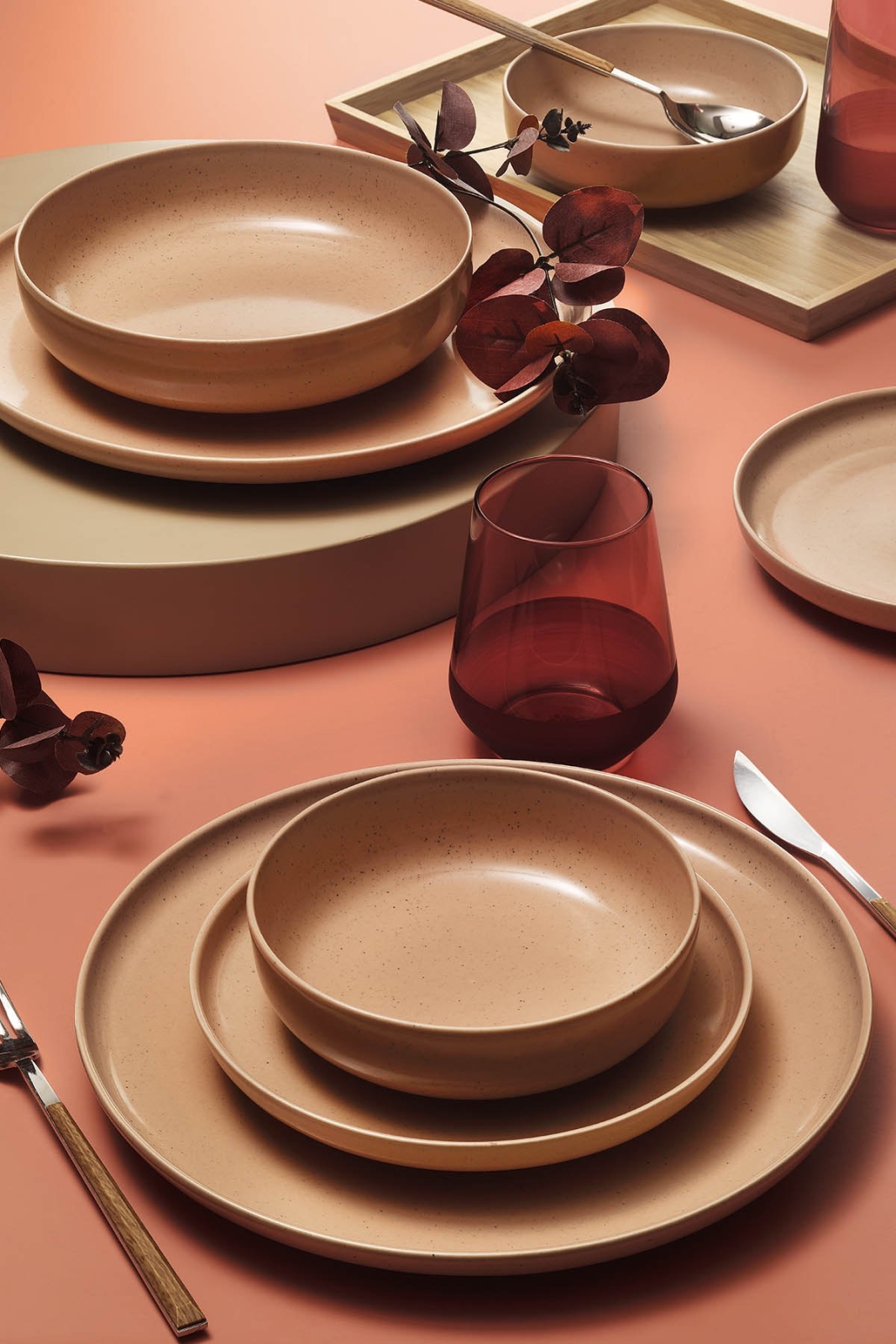 Ensemble de vaisselle 16 pièces marron/beige/porcelaine