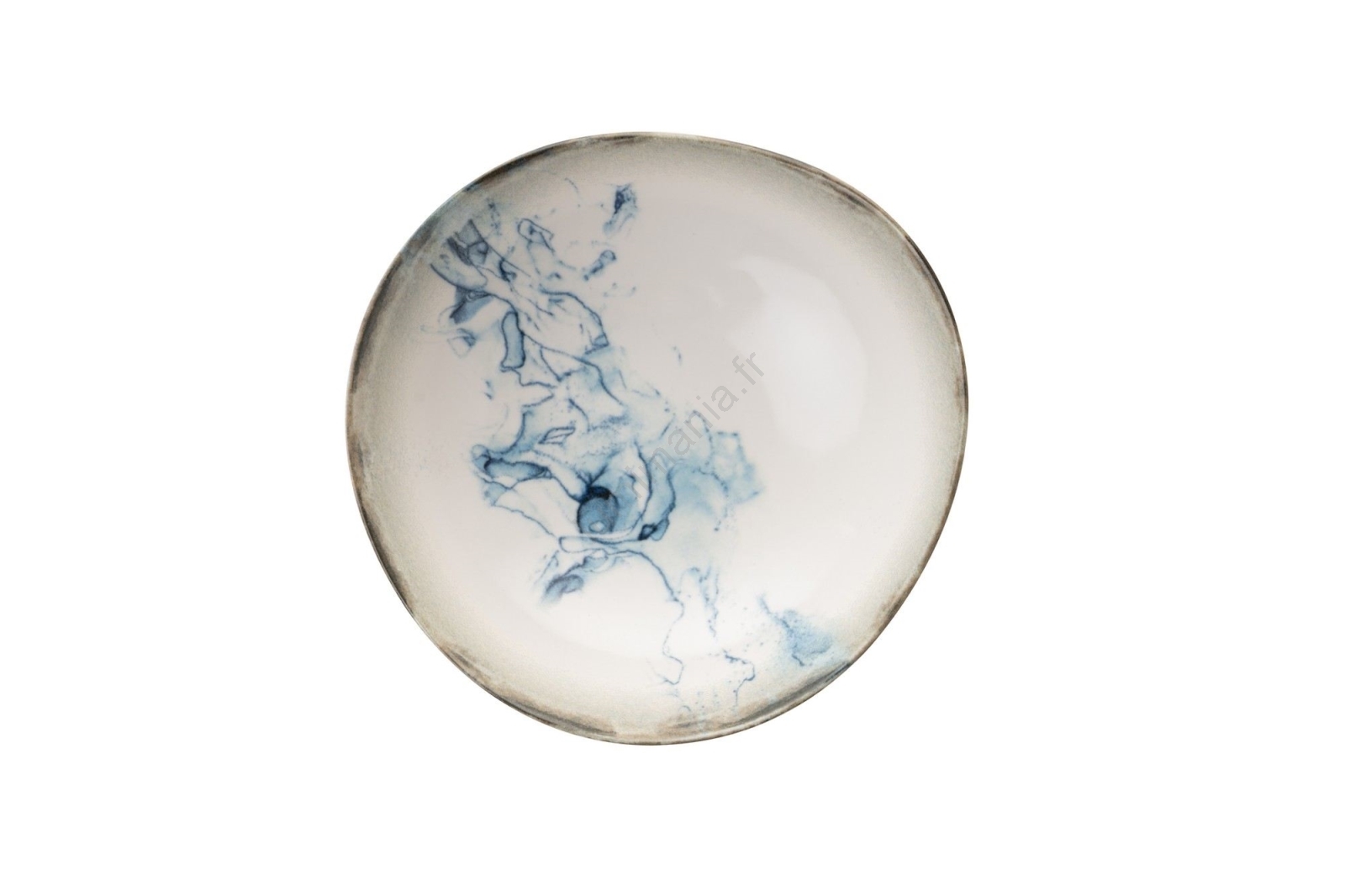 Ensemble de vaisselle 24 pièces en porcelaine, blanc/bleu