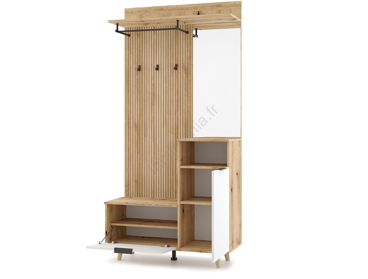 • Une étagère ouverte, des crochets, une tringle à manteaux et un grand miroir offrent exactement ce dont vous avez besoin.