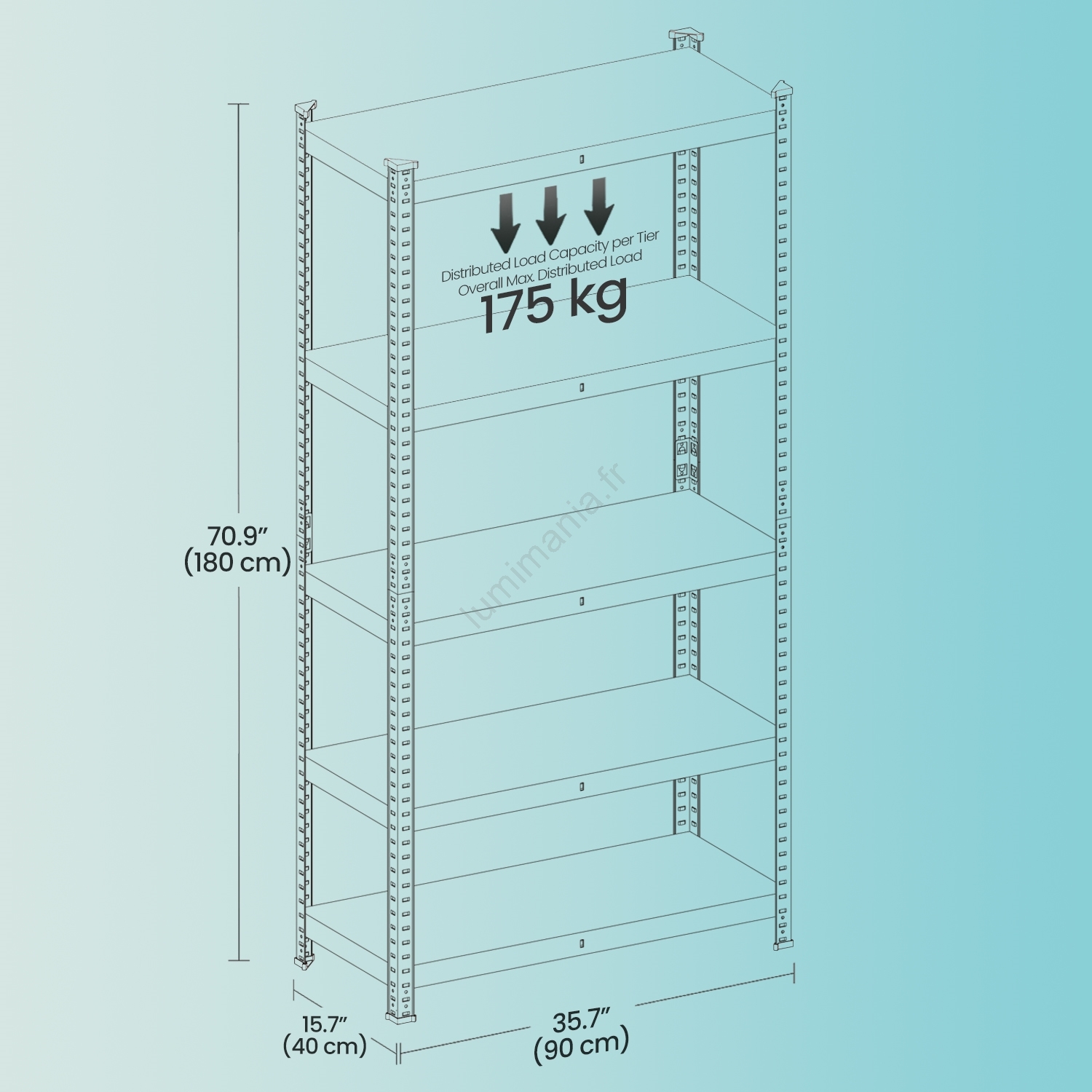 • Chaque étagère supporte jusqu'à 175 kg et accueille en toute sécurité peintures, outils et équipement de fitness.