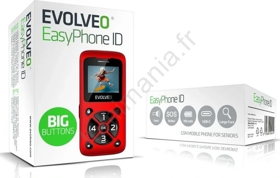 Evolveo - EasyPhone ID, téléphone mobile pour seniors, rouge