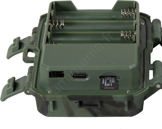 • Contenu du pack : caméra de chasse, sangle de fixation, lecteur USB pour carte micro SD et manuel d'utilisation.
