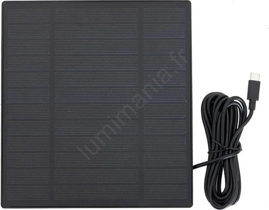 • Panneau solaire inclus : panneau 5W avec câble de 3 m garantissant une autonomie quasi illimitée sans avoir à remplacer les batteries.