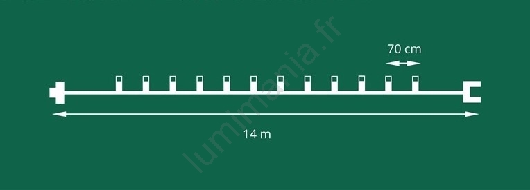 • Longueur de la partie éclairée de la guirlande : 14 m.