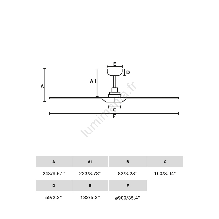 • Ventilateur de plafond sans éclairage.