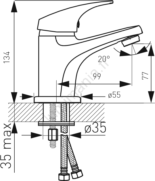 • Fourni avec bonde click-clack et flexibles d'alimentation.
