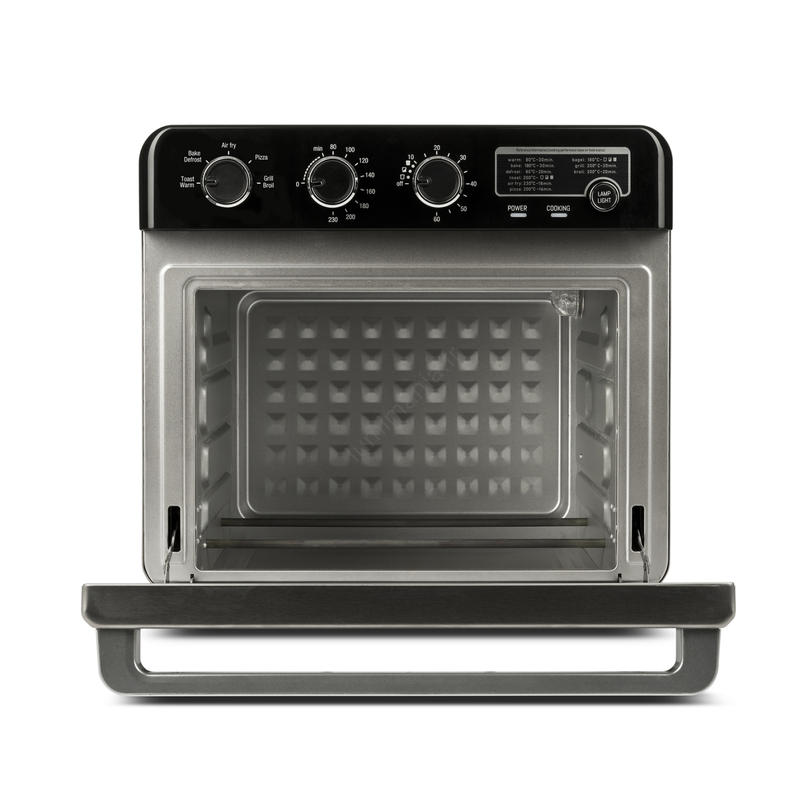 • Thermostat réglable jusqu'à 230 °C et minuterie pratique de 60 minutes.